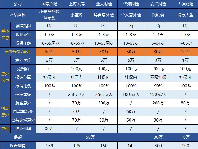 今天我對市場上的幾款意外險進行了具體分析,測評產(chǎn)品如下: