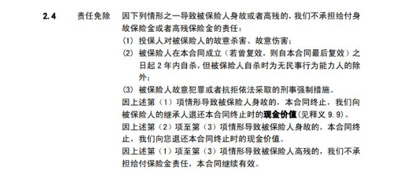 五、壽險除外責任