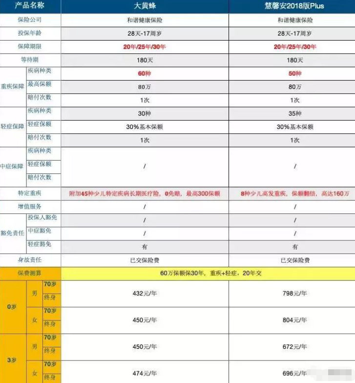 接下來,我們將分析和評估兩款孩子的定期重大疾病保險大黃蜂、 慧馨安: