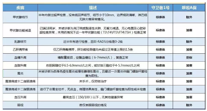 豁免保障 +智能核保 +預(yù)核保在豁免保障,守衛(wèi)者1號可選保險(xiǎn)豁免,輕癥 / 中癥 / 重疾 /死亡/總殘疾,可以保護(hù)所有,說360°無死角。雖然,保障責(zé)任不包含中癥保障,但已經(jīng)在保險(xiǎn)豁免條款中達(dá)成一致,一旦遭遇20種中癥疾病,豁免后期保費(fèi)。真棒!但是,應(yīng)該注意的是,被保險(xiǎn)人豁免暫時只對未成年人開放,也就是說,只有父母可以為孩子投保,如果他們想要互相保護(hù),他們必須等待。讓我們來談?wù)勊闹悄芎吮?,守衛(wèi)者1號的智能核保相對寬松。如果身體有小問題,如甲狀腺結(jié)節(jié)、乳腺結(jié)節(jié)、乙型肝炎攜帶者,即使是輕微的三高人口也可以正常購買。