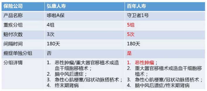 其中,癌癥最好分為幾組,因?yàn)榘┌Y是六大疾病中最高的。讓我們將哆啦A保與守衛(wèi)者1號進(jìn)行比較。