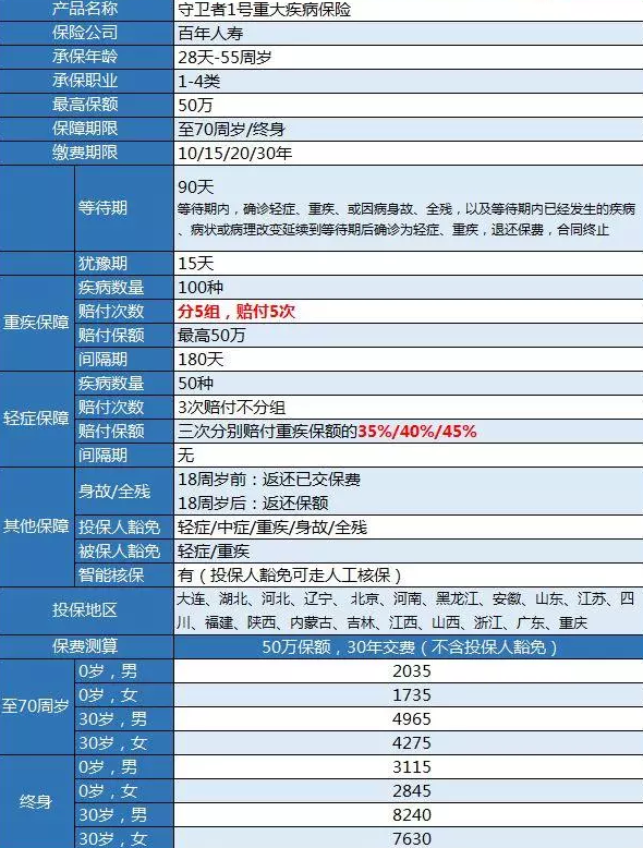 百年人壽守衛(wèi)者1號多次賠付重疾險(xiǎn)怎么樣