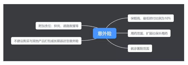 3.意外險(xiǎn),用于承擔(dān)事故造成的死亡,殘疾,醫(yī)療等風(fēng)險(xiǎn)。主要職責(zé)包括意外死亡,意外傷殘(10級(jí),281項(xiàng),賠付比率10%-100%),鑒于意外的突發(fā)性和后果的不確定性,建議意外險(xiǎn)配置更高的保額,目前超過一年綜合意外險(xiǎn),通常可以滿足“高保額,低保費(fèi)”。