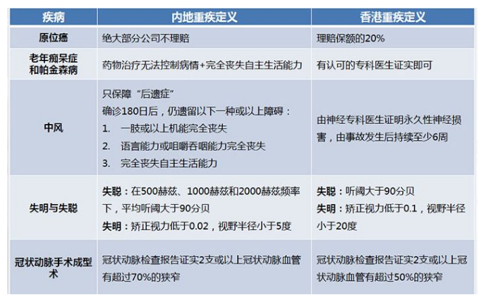 4、兩地重疾定義保險及不保項目不同